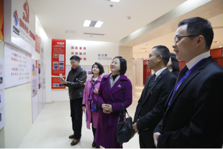 陳主席一行首先參觀了集團黨員活動室和企業(yè)文化宣傳區(qū),高度肯定集團黨建工作和文化建設(shè)工作。陳主席在參觀過程中說到,華川集團黨建陣地建設(shè)十分出色,集團黨建工作充分、扎實,值得學習和借鑒。在座談會上,陳主席一行觀看了集團宣傳片,全面了解了集團經(jīng)營理念、發(fā)展歷程、社會責任和企業(yè)榮譽等信息。隨后,集團副董事長駱小紅向陳主席一行介紹了集團產(chǎn)業(yè)發(fā)展、重點項目和企業(yè)管理等相關(guān)情況。